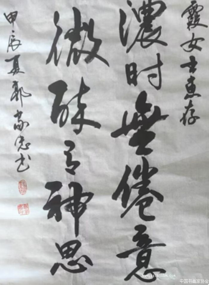 退休后,郭家忠先生重拾儿时梦想,对书法艺术的热爱如烈火燎原,不可遏制。他潜心研习,笔耕不辍,书法技艺日益精进,终获中国书画家协会会员之殊荣,其书法作品更是于2024年华夏杯全国书画大赛中脱颖而出,荣获金奖,实至名归,彰显了他在书法艺术领域的卓越成就。