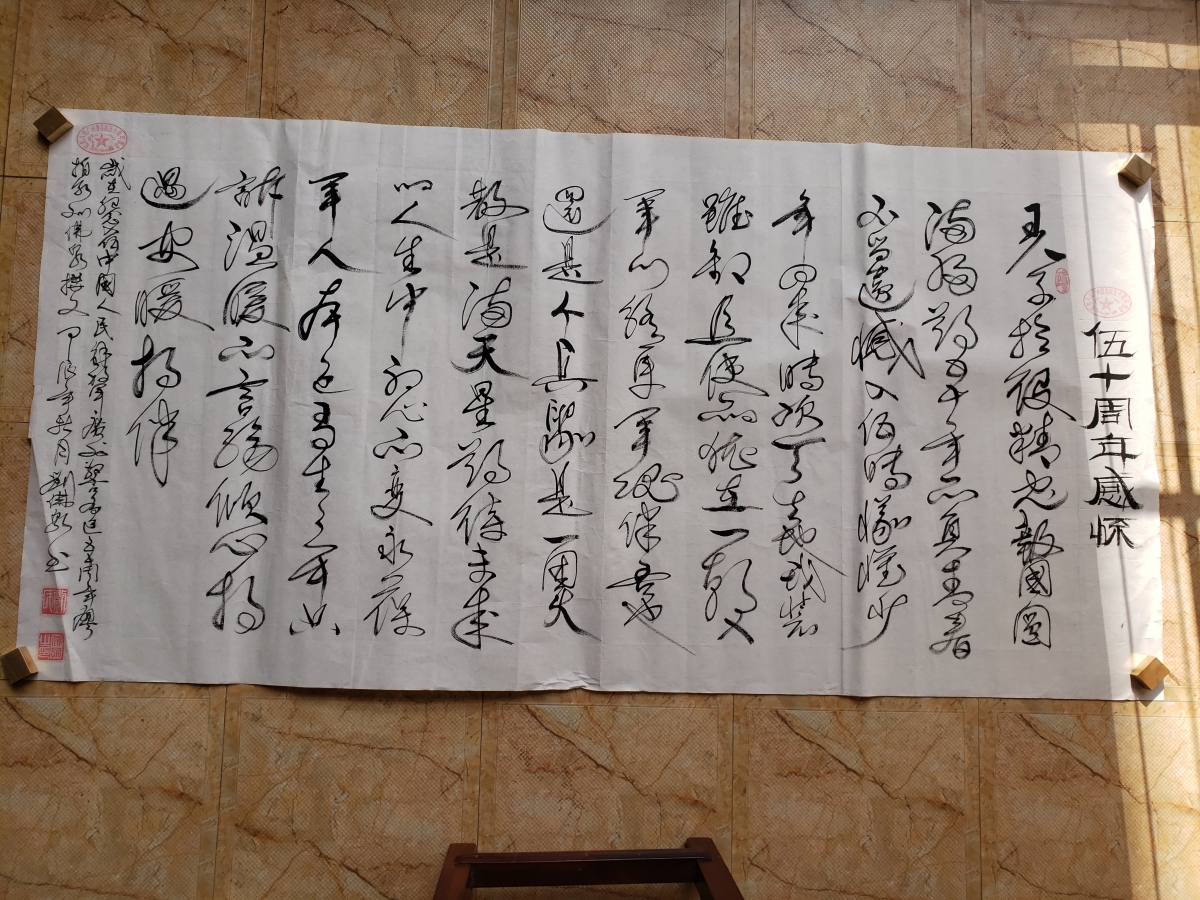 个人简介:刘佛泉,男,汉族,1955年11月30日生,高中毕业,中共党员,退役军人。广东省兴宁市人。高中毕業后在大队任资料员和文艺宣传队员。1974年12月光荣参加中国人民解放军广州警备区服役(期间1979年2月至6月,踊跃申请参战书,服从党和国家,中央军委的征召,调往广西前线参加对越自卫还击)历任付班长,班长,文书等职务,连队墙报写手,同任连队尖班,带领全班战士,刻苦训练,苦练杀敌本领,连队军事比武时,全班战士手榴弹比赛平均59米,勇夺全连队第一名,全团第=名,全班荣获集体三等功。本人四次荣获嘉奖。198O年1月光荣退役,回到家乡从事教书,公社放影队,乡镇政府机关工作,任党政办副主任,1993年3月调至广东电网兴宁供电局党委办主任,2O13年退休,企干本从小学至高中都酷爱书法,从中学至高每次书法比赛都勇夺第一,学校东风战报的副主编负责收集文章和出黑板,在部队里全面负责连队的黑板出板。由于本人悟性好,写书法完全自学成才,善于写楷,行,隶,草,篆书等。还特长于篆刻等各种印章,自刻自用,平时积极参与本地和全国各有机构的书法比赛荣获特等状1次,一等奖1次,二等奖1次,三等1次,优秀奖I次,退役退休后,做到退伍不褪色,永葆初心,保持和发扬军人光荣传统,坚定党的信念,遵守党的纪律,永远跟党走,在弘揚中國书法文化艺术传统的基础上,不断地探索,研究,创新中国书法艺术文化工作。