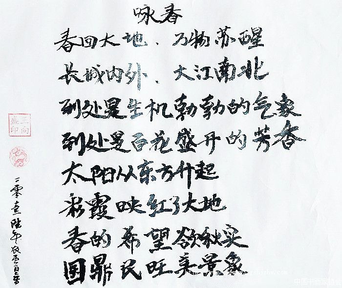 王向盛的书法作品以其工整流畅的书法作品而闻名的书法家。他的楷书作品字迹端庄大方,线条流畅有力;行书作品则富有变化,书法飘逸灵动。这些作品曾在国内外多个展览中展出,并受到广泛好评。