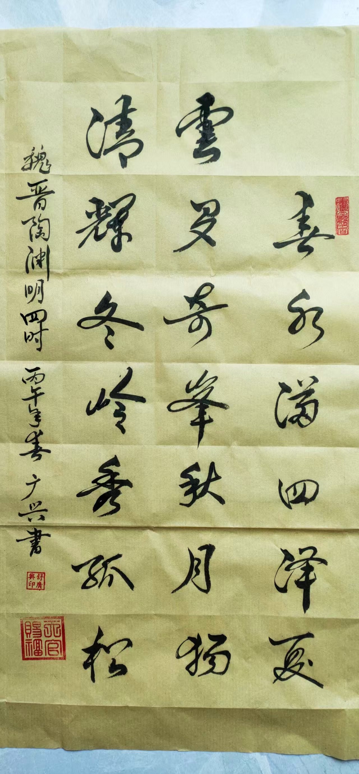 姓名:舒广兴,、性别男,民族汉,籍贯:山东省滨州市博兴县湖滨镇东二村,简历:从小上学,二年级时,启萌老师刘乐见,是当地非常有名望的书法老师。在老师的培养下,逐渐展露锋芒,从小学到初中以及高中,都是书法尖子,后来在学校当民师,也不断学习进取,现在虽然年令已高,但还是继续练习,逐渐提高书法水平,个人对书法很热爰执着,以是生活中不可缺少的一部分。也是对书法艺术的传承和发展,弘扬中国文化艺术,将推向普及和灿烂的明天。